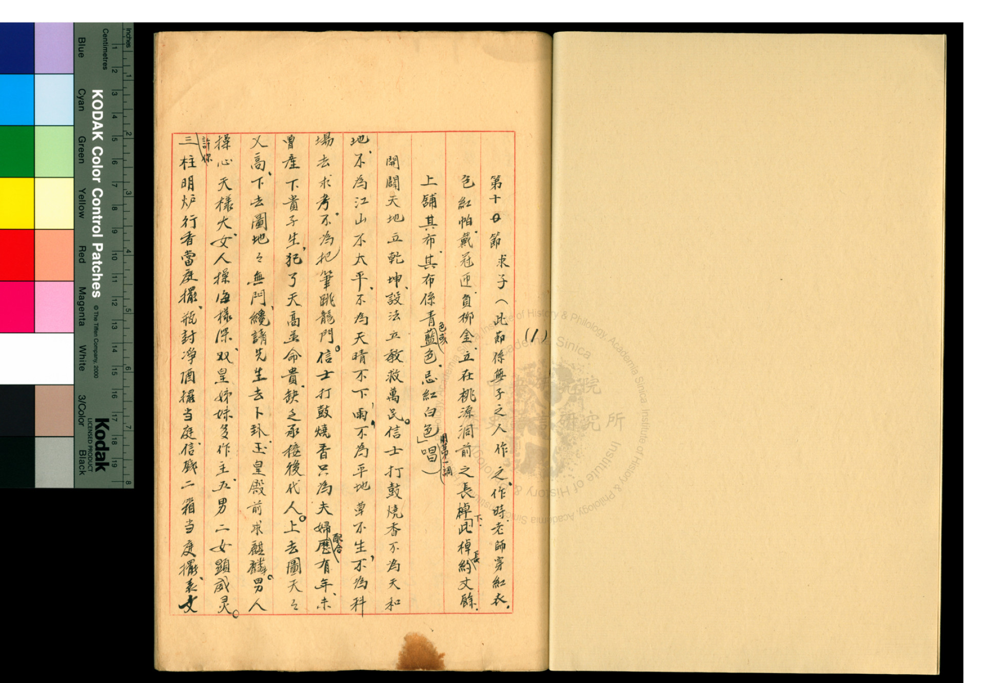 Excerpt from “Repaying a Nuo Vow” Ritual Text Item No. A MT-072 More collection items 何謂「傳統服飾」? 攝影!攝魂! 繡花圍腰 花苗背包 擺夷女綁腿 銀飾 滇夷圖說 布依族花邊 山頭煙斗 銀盒 湘西苗族標本原採購登記冊 傈僳刀 金漆傘 紅漆圓盒 匕首 加屜大銀盒 凸紋圓銀水缽 小揹籮 令箭木牌 測量人體相關器具 竹編魚斗 飾銀片花梳 竹篦子 銀耳環 綴珠銀頸飾 管狀絞絲銀鐲 貝殼腰帶 女後圍 白苗女子服飾 藍布繡花女子服飾 花苗背包 繡花鞋 彝族少女服飾 雲南西盟拉祜族女子服飾 傈僳族女子服飾 花邊 花邊 挑花褲邊 花邊 未完成之花邊 刺繡花邊 圍裙飄帶 四川茂縣永和羌族婦女服飾 四川茂縣黑虎溝羌族婦女服飾 樂舞蠟染 菱格紋織錦 打子繡 挑繡 鎖繡 巫師服 桌布 八郎面具 判官面具 仙逢面具 還儺願儀式巫師的頭飾 馬鞭 牛角 師刀 令牌 仙逢旗 貝葉經 彝族的雞骨卜 送祖先經 延壽經 露曼露沙 祭風道場錯盤土 東巴教主的出處來歷‧上冊 Materials on the Western Xiang (Hunan) Miao 各種酸菜的製法 吃牛秘訣 吃牛秘訣 還儺願扮判官 Hwa Miao Acts使徒行傳 Shoe-Shaped Silver Box Oval Silver Box Oval Bamboo Woven Box Wooden Command Arrow Plaque Survey of Folk Customs of Sichuan and Kham, Li Guang-ming and Wang Yuan-hui, authors. Illustrated Explanation of the Dian Barbarians Leather Shield Knife and Sheath Knife and Sheath Shield Goat Trapping Net Miao “Lusheng” Wind Instrument Red Lacquer Food Container Oil-Paper Umbrella Embroidered Red Satin Sling of the Hua (Colorful) Miao Subgroup Hani Women’s Dress Lahu Women’s Dress Lahu Women’s Dress Long Violet Gown Achang Women’s Dress Blue Women’s Hat with Silver Adornments Embroidered Gray Women’s Garment with Blue Trim Dai Women’s Dress Miao Women’s Dress Miao Women’s Dress Miao Women’s Dress Hairpin Boar Tusk Jewelry Back Panel of the Hong (Red) Miao Subgroup Wax-Resist Dyeing of the Dong (Kam) Peoples Qiang Headscarf and Faux Braids Qiang Women’s Dress Qiang Women’s Dress Qiang Women’s Dress Mask of the God of Land Mask of Kaishan (lit. “Mountain Opener”) Mask of the Monk Nuogong (Lord Nuo)Nuomu (Mother Nuo) Purple Bamboo Riding Whip Broom of Cloth Strips Bamboo Divination Blocks Excerpt from “Repaying a Nuo Vow” Ritual Text Bell Complete Ritual Text of “Ox Ceremony” Complete Ritual Text of “Jielong” (Receiving the Dragon) Yi Manuscript and Annotations Gospel of John Gospel of Luke Excerpt from Baiyi (Dai) Ritual Text Paper Banner with Tiger Illustration Han Dai Gui (lit. "Shouting Addled Ghost") Scripturet Dongba Manuscript for the “Burning Heavenly Incense” Ritual Paper Banner with Yak Illustration Twenty-Six Lot Divination Text Manuscript for Inviting Dongba Shiluo from the Eighteenth Layer of Heaven "Expelling Duo Demons" Ritual Paper Banner Illustrated with Dragon and Tiger Woven Banner Ritual Wooden Dragon Straw Figurines Funerary Figurines Crossbow and Arrows Red Lacquer Lunch box Embroidered Apron Nuo God and Nuo Goddess Palm Leaf Buddhist Text Shaman’s Knife