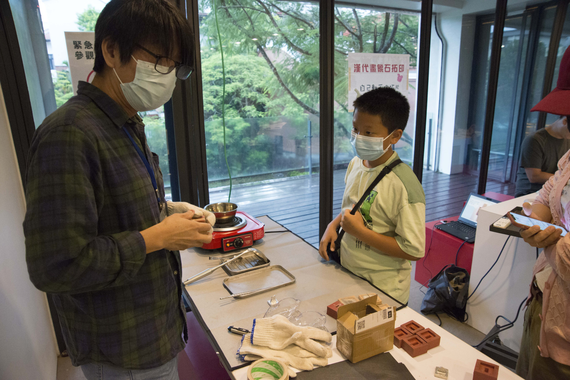 | 15分 | 活動簡介 -鑄匠入魂展覽簡介 -活動流程及注意事項 | 地點: 二樓教育活動區 教具: 錫、特製陶版、矽膠模具、手套、護目鏡 建議: 可提前準備想鑄成古印的文字或圖像 |