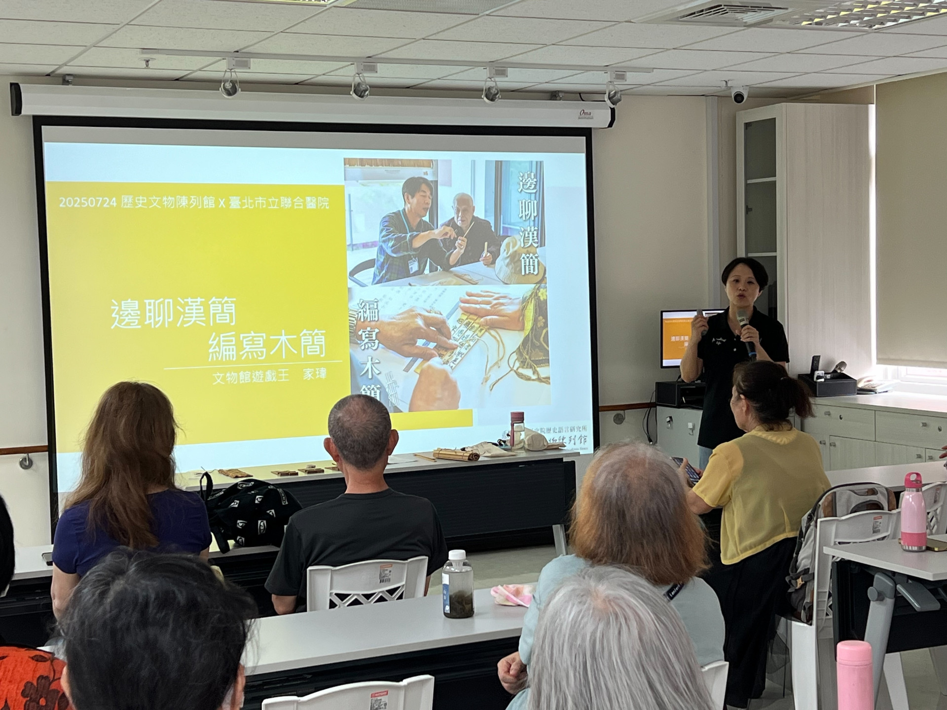 歷史文物陳列館受臺北市立聯合醫院邀請,於莒光健康增齡賦能中心舉辦「邊聊漢簡、編寫木簡」博物館處方箋,希冀能以文化資產的活化再利用之思維,為失智友善、社會服務,提供更活絡的博物館活動。而本館2025年暑期實習生也加入此行協助辦理,為當天活動增添更多活力!