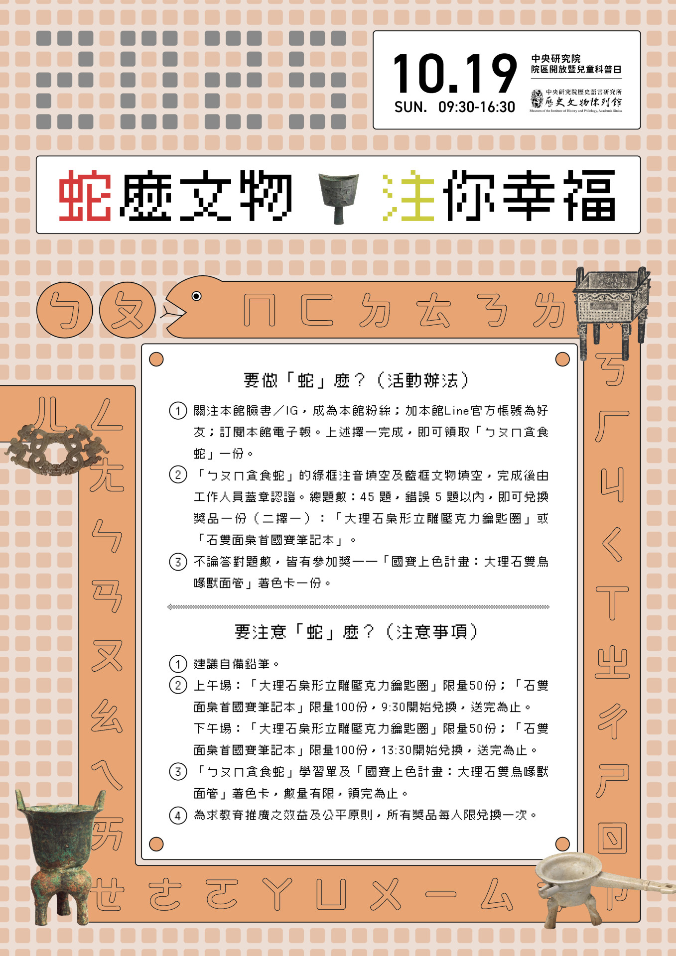 在文物館裡「蛇」來「蛇」去,瞧瞧「蛇」麼文物、「注」你幸福!